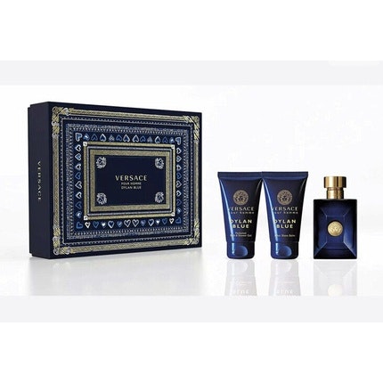Versace Dylan Blue 3- Piece Giftset For Men, Eau DeToilette 50ml, Aftershave Balm 50ml, Luxury Bath & Shower Gel 50ml